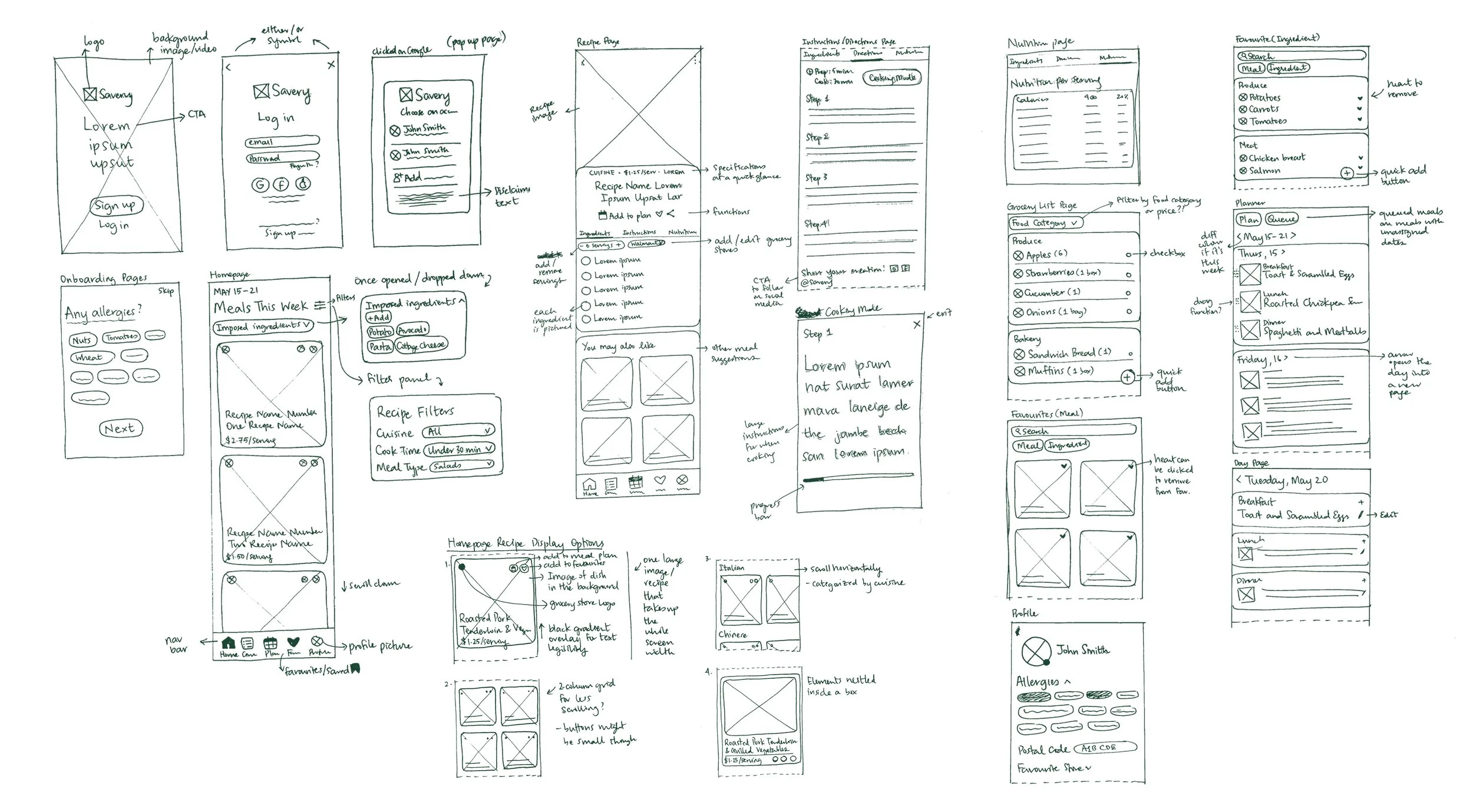 I started by sketching out some low-fidelity wireframes to jot down screen ideas, which changed a little as I went further in the design process.